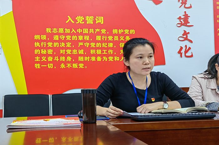 會上還組織全體黨員過集體政治生日,重溫了入黨誓詞。韋豔芳、陳芸芸、朱曉敏三名黨員代表進行入黨心得交流。