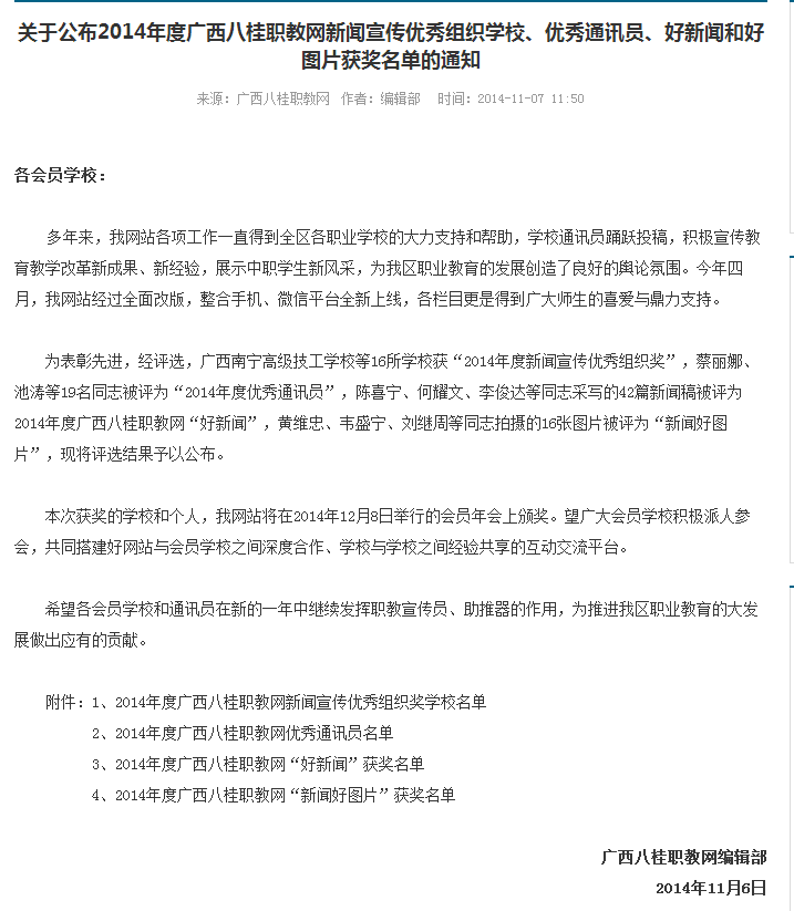 我院喜獲2014年度廣西八桂職教網新聞宣傳(chuán)工作多項榮譽