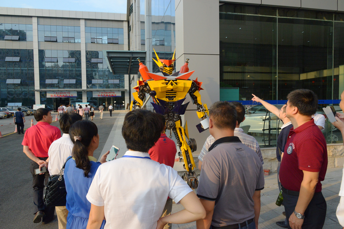 來訪人員對我院學生製(zhì)作(zuò)的“變形金剛”交口稱讚