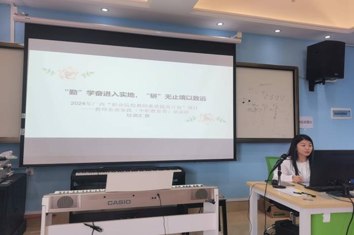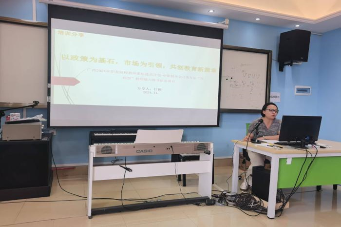 首先是(shì)甘穎老師以職業教育為(wéi)基,融合教育為橋,深刻體會為引,題為《以政策為基石,以(yǐ)市場為引領,共創教育新篇章》的分享。她從(cóng)培訓內容、培訓收獲和培訓成果轉化三個方(fāng)麵跟大家開展分享,並深刻總結了本次外出培訓對其教學方(fāng)式和觀念(niàn)改(gǎi)進與提升的心得感悟。在此過(guò)程中,甘穎老師的分享(xiǎng)毫無保留、邏輯清晰,現場教師們(men)也認真地傾聽並做筆記。