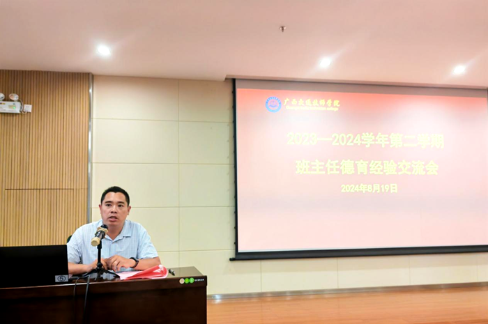 為進一步落實黨的教育方針,堅持立德樹人,加強班主(zhǔ)任隊伍(wǔ)建設,提高學院德育工作(zuò)效果,8月19日下午,我院2023-2024學年第二學期班主任德(dé)育工作經驗交流會(huì)在綜合樓1619會議室舉行,學生工作科、各係(xì)部領導及全體班主任參加了本次交(jiāo)流會。會議(yì)由學(xué)生工作科科長孫祖德主持。