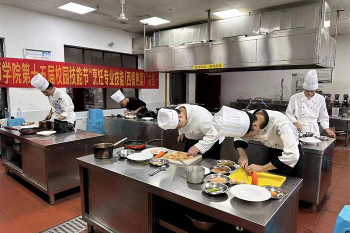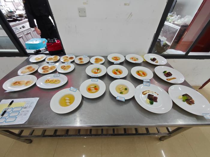 交通客運服務賽項選手評委合照在烹飪類賽項中,《烹飪(冷拚與雕刻(kè))》《烹飪(西餐熱菜)》《烹飪(中餐熱菜)》以及《烹(pēng)飪(中(zhōng)式(shì)麵點)》四大類賽項分別展現了學生們在冷菜、西餐、中(zhōng)餐以及麵點製作方麵的才華。選(xuǎn)手們精心製作的菜肴和麵點不僅(jǐn)色香味俱佳,而且創意十足,充分展(zhǎn)示(shì)了他們的烹飪技藝和創新能力(lì)。