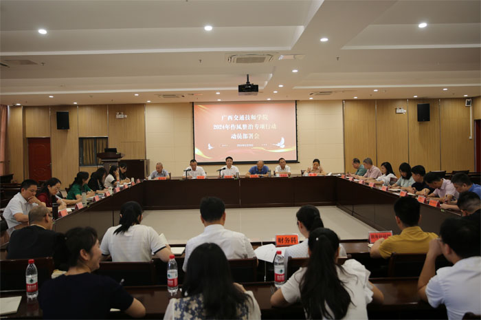 5月29日上午(wǔ),廣西交(jiāo)通技師學(xué)院“2024年作風整治專項行動動(dòng)員部(bù)署會”在綜合(hé)樓1619會議廳召開。黨委書記賴國秋作會議小結,紀(jì)委書記蒙青山作動員講話,學(xué)院在家(jiā)院領導、全體中層(céng)領導幹(gàn)部、黨支部書記參加會議。