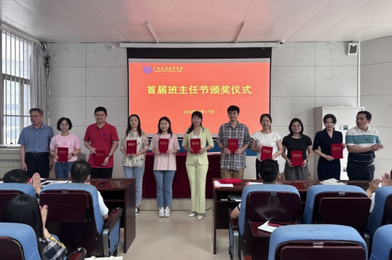 會議最後,進行了我院首屆“班主(zhǔ)任節”頒獎儀式。學生工作科及(jí)各係部(bù)領導為在(zài)班級(jí)建設方案、管理育人案例、“致敬班主任老師”圖片和視頻征集活(huó)動中獲獎的班主任們頒發榮譽證書。