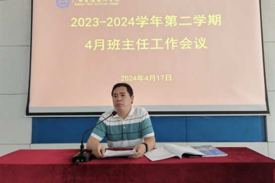 為進一步增強班級管理工作的針對性和實效性,提高學校德育工作和班級管理水平,4月17日下午,學院在邕武校區求知樓階梯教(jiāo)室召開班(bān)主任工作會議。各係(xì)分管學生管理工作領導和幹事、全體班主任和學生工作科(kē)工作人員參會,會(huì)議由(yóu)學生工作科科(kē)長孫祖德主持。