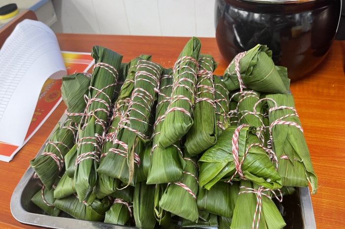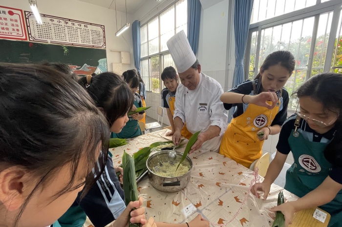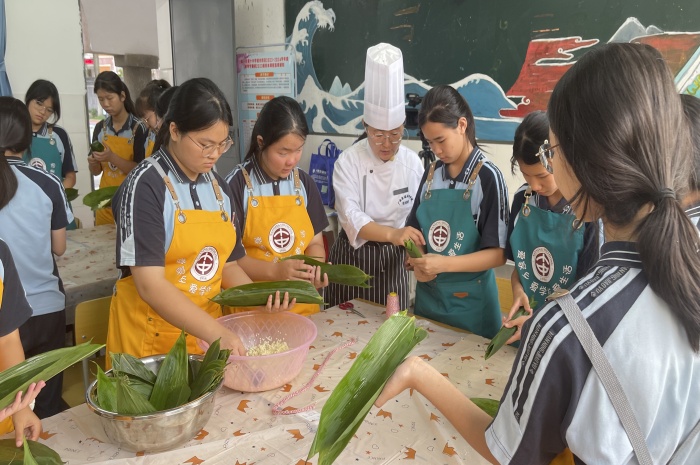 謝凱銘老師指(zhǐ)導同學們(men)製作涼粽