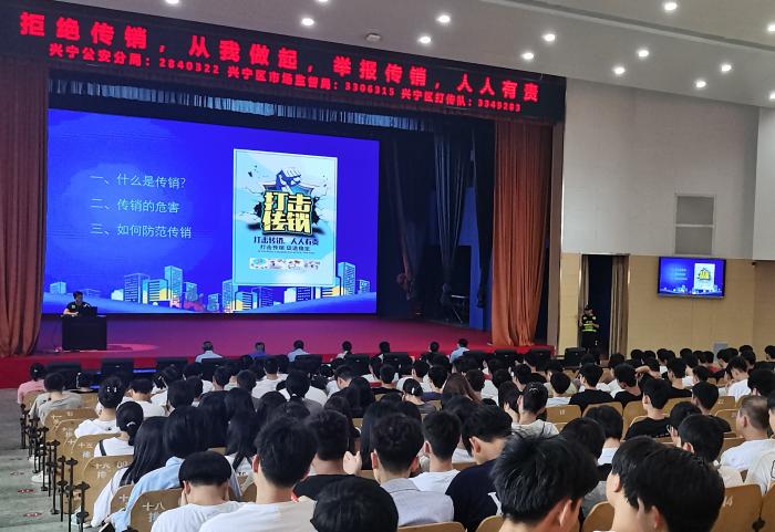 為貫徹落實國家(jiā)市場監(jiān)管(guǎn)總局關(guān)於打擊傳銷(xiāo)工作的要求,切實保護全院師生的人身財產(chǎn)安(ān)全,9月20日下午,我院(yuàn)聯(lián)合(hé)南寧市打傳辦、興寧區市場監管局、市公安局興寧分局、興寧區(qū)城管局等相關單位,在邕(yōng)武校區禮堂開展主題為“警惕傳銷(xiāo)陷阱(jǐng),創造和諧校(xiào)園”的校園防範傳銷宣傳教育活動。