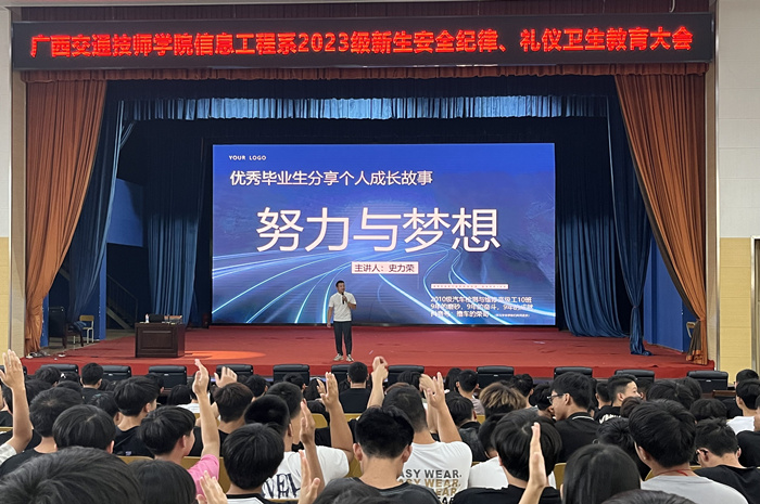 在楊行(háng)銘老師的安全(quán)教育講(jiǎng)座完(wán)畢後,信息工程(chéng)係還邀請了往屆優秀畢業生史力榮分享他在校期間的個人成長故事。史力榮通過精(jīng)心準備的課件,豐富、專業的理論知識和多年工作經驗為同學們講解(jiě)了在校期間的成長方向和畢業之後未來規劃幫助2023屆新生答疑解惑。