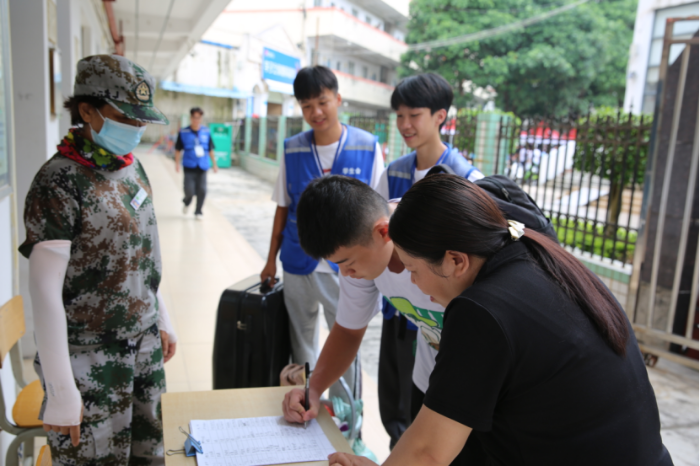 報到當天(tiān),學院內紅旗招展(zhǎn),橫幅高懸,一派(pài)熱鬧景象。盡管人流(liú)車流不息(xī),迎(yíng)新現場依舊秩序井然(rán)。這多虧了(le)報到流程的合(hé)理規劃和清晰指(zhǐ)引,校(xiào)門口(kǒu)、班級報道處、專業審核處、宿舍報到(dào)處等一係列服務(wù)站(zhàn)點(diǎn)均設有指導老師和學生誌願者為新(xīn)生(shēng)及家長提供導(dǎo)引服(fú)務,讓學生和家(jiā)長從了(le)解學科專業(yè)、辦理報到手續,再(zài)到搬運行李入住宿舍的整個過程享受到完整的一條龍服務。在驕陽似火中,在人潮人海中,在滿腔熱忱中,學院的熱情與學生的激情相(xiàng)互(hù)碰撞,激發出燦爛的青春光彩。