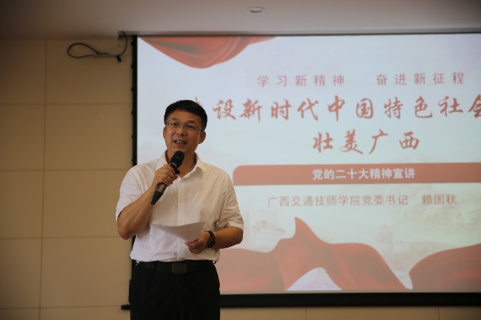 培訓班第一課上,賴國秋帶領學員們深入學習黨的二十大精神,緊緊圍繞習近平總(zǒng)書記在參加黨的二十大廣西代表團討論時提出的“五個更大”重要要求(qiú),引導參訓學員深刻領悟(wù)“兩個確立”的決定性意義,進一步增強“四個(gè)意識”、堅定“四個自信”、做(zuò)到“兩個維護”;同時從加強教(jiāo)師職業道德建設的重要意義、教(jiāo)師職業道德規(guī)範及相關的法律規範、師德師(shī)風建設中存(cún)在的問題、師德師風(fēng)建設的(de)要求等四個方麵(miàn),對新時代的師(shī)德師風建設(shè)內容進行專題(tí)授課,要求各參訓學員要爭做有理想信念、有道德情操、有紮實學識及仁愛之心的“四有(yǒu)”好(hǎo)老師。