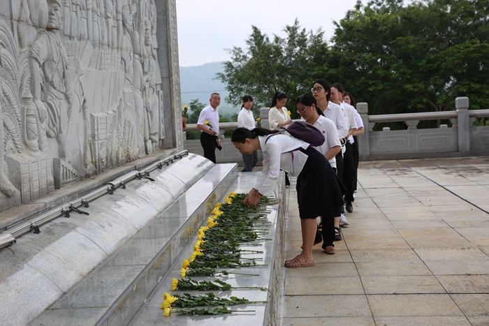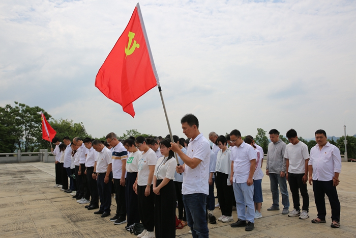 在龍州起義紀念碑,全體黨員肅立在紀念碑前(qián),奏唱《中華人民共和國國歌》,並行默哀禮(lǐ)。默(mò)哀(āi)禮畢,全體黨員緩步走上前,依次向紀念碑獻花,瞻仰烈士紀念(niàn)碑,緬懷(huái)革(gé)命先烈。