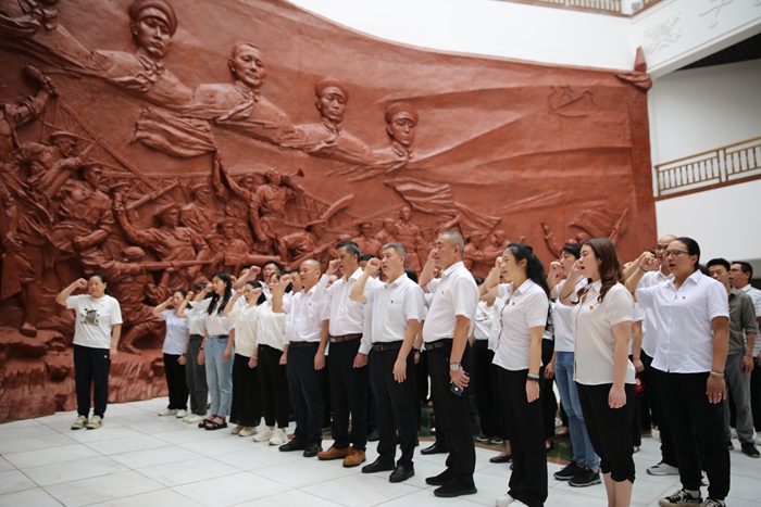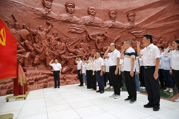 在龍(lóng)州(zhōu)起義紀念館,黨員們(men)麵向鮮紅的(de)黨旗,重溫入黨誓詞。在講解員的引領下,黨員們認真聆聽“邊關風雲”“赤色龍州”“解放左江”“豐碑永存”四部分內(nèi)容的講述,觀看珍貴曆史照片。