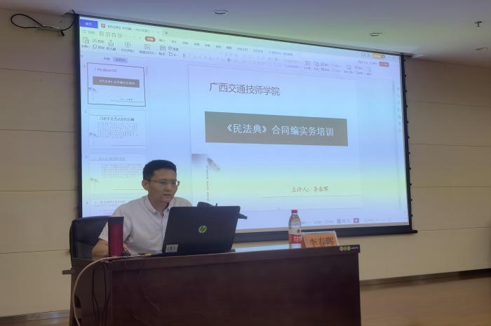 本次培訓由學院法律顧問單(dān)位廣西頌誠律師(shī)事務所執行主任、高級合夥人李春暉律師為參訓人員授課。李律師分別從學習民法典的重要意義、合同的基本知識、合同條款的(de)草擬設立、修改和合同履行實務操作及風險防範等(děng)方麵進行了深入淺出的詳細講解和(hé)典型案(àn)例分享(xiǎng)。