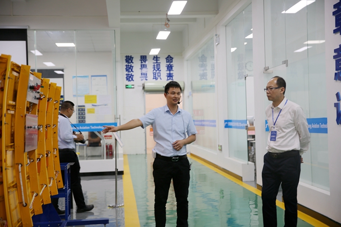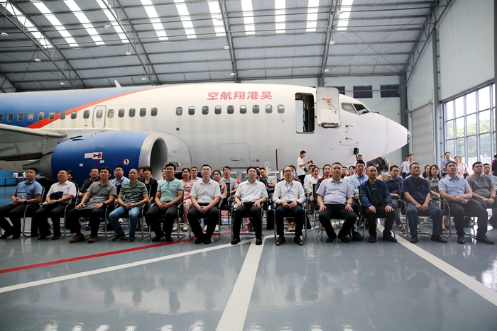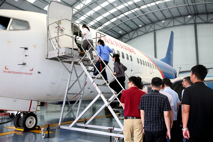 陸曉明副廳長及(jí)學員們在我院領導陪同下觀看飛機維修解說