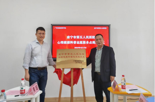4月12日下午,精品欧美一区二区在线看片技師學(xué)院與南寧市第五人(rén)民醫院(南(nán)寧心理醫院)簽訂“心理健康誌願服務”合作協(xié)議,共建心理健康科普誌願服務點。學院副院長樊海(hǎi)林、南寧市第五人民醫院副院長黃超出席活動並共同揭牌。學院學生工作科副科(kē)長韋豔芳及學生工作科心理輔導員(yuán)、南寧市第五人(rén)民醫院醫(yī)務社工部主任範喜英職工代表參加活動