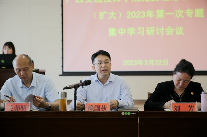 3月(yuè)22日,精品欧美一区二区在线看片技師學院(yuàn)黨委(wěi)理論學習中心組(擴大)2023年第一次專題集中學習(xí)研討會議在邕武校區1619會議室召開。學院黨委書記賴國秋主持會議,9位黨員(yuán)領導(dǎo)幹部圍繞集中學(xué)習(xí)的內容,結合實際工作分別作重點交流發言(yán)。