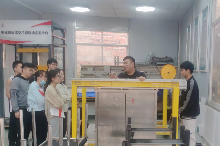 培訓內容主要包括電梯限速器安全鉗聯(lián)動平台的操作、限速器模(mó)擬仿真裝置的(de)使用、電梯層門(mén)和(hé)轎門(mén)的結構和工作原(yuán)理以及(jí)電梯繩(shéng)頭組合的更換等。方俊華根據多年的電梯工程(chéng)設計和施工經驗,向老師和同學們深入講解電梯中各種關鍵性部件的性(xìng)能分析及處理方法。教師們在培訓(xùn)中不僅(jǐn)增強了安全意識,同時對電梯行業發展趨勢、人才培養方向有了新的認識。