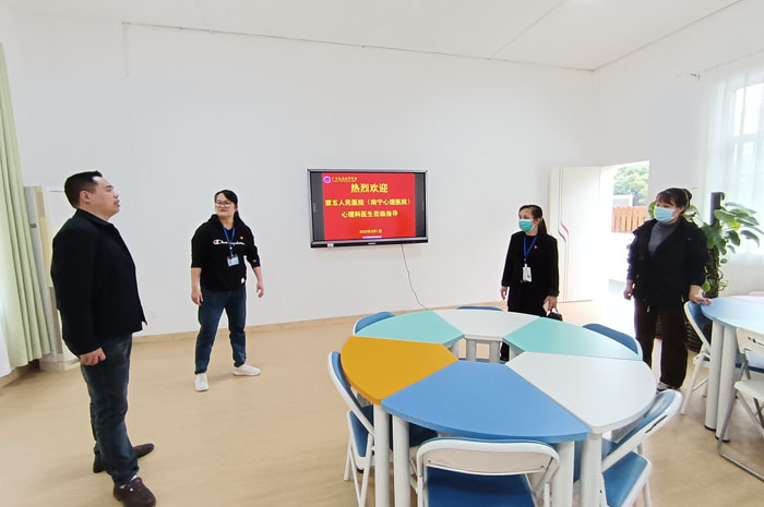 3月1日,學(xué)院與南寧市第五人民醫院在求學樓二樓心理輔(fǔ)導(dǎo)中心(xīn)開展心理健康誌願服務合作交流。南(nán)寧市第五人民醫院醫務(wù)社工暨誌願服(fú)務部(bù)主任、心理科第一黨支部書記、大心理科護士長範喜(xǐ)英(yīng)及隨行醫師、我院學生工作科科長孫祖德、副科長(zhǎng)韋豔芳及醫(yī)校兩方代表參加交(jiāo)流。