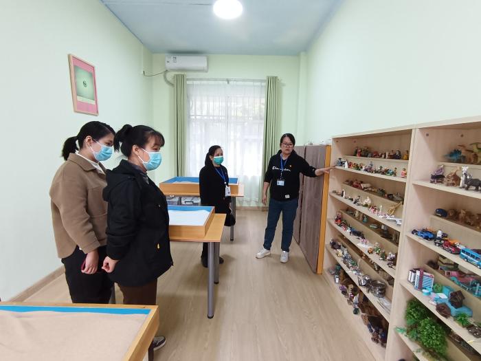 韋豔(yàn)芳簡要介紹了學院的(de)心理輔導中心情況,就學院學生的心理健康教育工作的(de)開展情況進(jìn)行了重點闡述,表達了學院與醫院之間開通學生就診“綠色通道”、加快學生心(xīn)理健康教育和谘詢救治的迫切希望(wàng)。並帶領範喜(xǐ)英一行參觀了學院心理輔導中心的教師辦公室、心語間、沙盤遊戲室、情緒宣泄室、團體(tǐ)輔導教室等場所,現場演示學院瑞格係統、MS心理測試工具箱、音樂放鬆按摩治療椅等專業設備。
