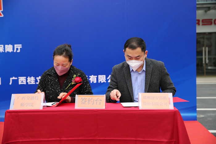 開幕(mù)式上,學院院長劉芳與鄭州捷安高科股份有限公司副總經理周鬆簽訂校企合作協議,參會領導、嘉賓為技術支持(chí)單位贈與牌(pái)匾,裁判員代表、參賽選手代表分別上台進行宣(xuān)誓。