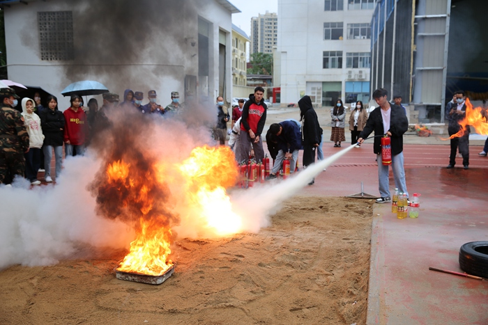 演練現場,學生們在老師及教官的指引下,用濕(shī)毛(máo)巾捂住口鼻,彎腰慢跑,從宿舍、教學樓等地有序(xù)撤離,到達安全地點。在消防人員的指導下,學院師生現場體驗滅火器實操,增進對消防器材的使用方法的了解。同時,消防人員(yuán)還結(jié)合學院的實際情況,介紹了學院(yuàn)消(xiāo)防安(ān)全的重點注意事項。