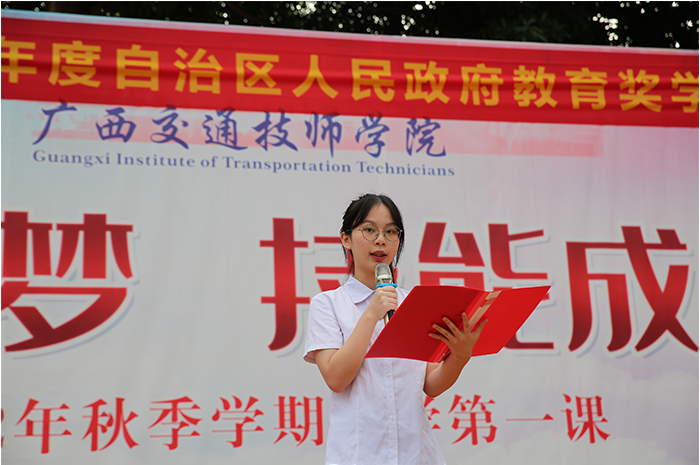 21級汽車營銷專業中級工班覃(tán)允兒同學作題為“立足專業,成就職業夢想 ”的國旗下講話。鼓勵同(tóng)學們熱愛自己的專業,在專業學習上做(zuò)到認真勤懇,一絲不苟;在訓練過程(chéng)學會如何(hé)發現問題、解決問(wèn)題,如(rú)何隨機應變、沉(chén)著冷靜的應對;始終相(xiàng)信自(zì)己,不懈的努力加上合適的方法(fǎ),一(yī)定會讓自己學有所得,學有所獲,學有(yǒu)所長(zhǎng)。