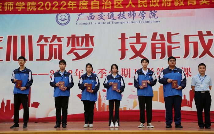 為(wéi)了全麵(miàn)貫徹(chè)黨(dǎng)的教育(yù)方針,鼓勵學生刻苦學習,學院積極推進資(zī)助育人工作,組織開展2021-2022學年自治區(qū)人民政府中等職業教育獎學金評定工作,龍佳嫻、鄧先泉、富(fù)俊、陳(chén)武佳、鄧文(wén)靜、陸昊等156名同學獲自治區人民政府獎學金(jīn)。11月28日上午(wǔ),學院在燈光球場舉行2022年自治區人民政府獎學金頒(bān)獎儀式。學院黨委副書記(jì)、紀委書記韋昌(chāng)甲為獲(huò)獎學生代表頒獎(jiǎng),全體(tǐ)師生參加頒獎儀式。