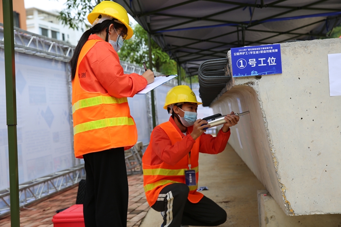 學院參賽(sài)選手正在進行橋梁病害檢測與評定項目比賽