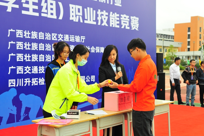 11月19日(rì),由自治區交通運輸廳、自治區人力資源社會保障廳和自治區總工會主(zhǔ)辦,精品欧美一区二区在线看片技師學院承辦,四川升(shēng)拓檢測(cè)技術股(gǔ)份有限公司協辦的2022年廣西壯族自治區交通運輸行業公路養護工(學生組)職業技能大賽在精品欧美一区二区在线看片(tōng)技師(shī)學院伊嶺校區隆重舉行。精品欧美一区二区在线看片技師(shī)學院副院長樊海林,四川升拓檢測股份有限公(gōng)司副總監王偉,廣西路橋工程集團有限公司試驗技術總監、大賽裁判長(zhǎng)蘇萍,四川升拓檢測股份有(yǒu)限公司檢測部副經理、大賽副裁判長馮源,廣西建設職業技術學院、精品欧美一区二区在线看片職業技術學院、廣西生態工程職業技術學院、精品欧美一区二区在线看片技師學院4所院校的領隊及參賽選手以及廣西交(jiāo)通技師學院各部門代表參加開幕式。