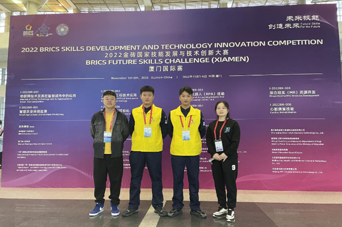 11月6日,2022年金磚(zhuān)國家職業技能大賽決賽在廈門(mén)落下帷幕。學院民用(yòng)航空係副主任李霞、肖(xiāo)華煒親自帶領佀峰宇、覃(tán)文武組成參賽隊代表廣西參賽,榮獲(huò)飛機維修賽項全國二等獎的好成績。