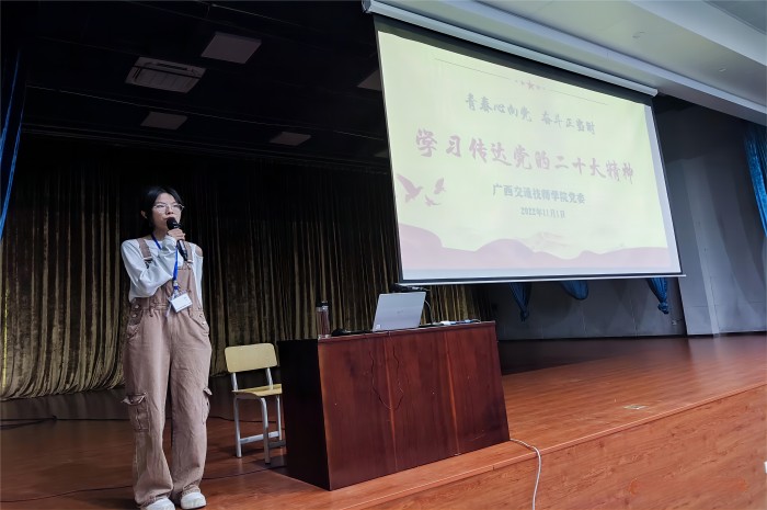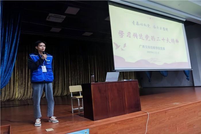 11月(yuè)1日,學院長堽校區組織召開青年學生幹部(bù)會議,學院黨委副書記、紀委書記韋昌甲宣講(jiǎng)黨的二十(shí)大精神。