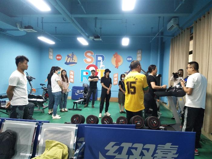 教(jiāo)職工在聽教練講解並親(qīn)自體驗健身器材(cái)