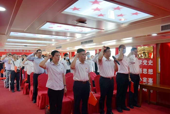 為迎接二十大的勝利召開,深化黨史學習教育,重溫紅船精神,進一步增強黨支部(bù)的凝聚力和戰鬥力(lì)、發揮黨(dǎng)員幹部的先鋒模範作用。10月12日(rì)下午,學院管理第一黨支部、交通工程係黨支部、信息工程係黨支部、商務服務係黨(dǎng)支部、民用航空係黨支部、基礎學(xué)科(kē)部黨支部共84名在職黨員赴邕江紅色主題遊船,開展主題(tí)黨日活動。