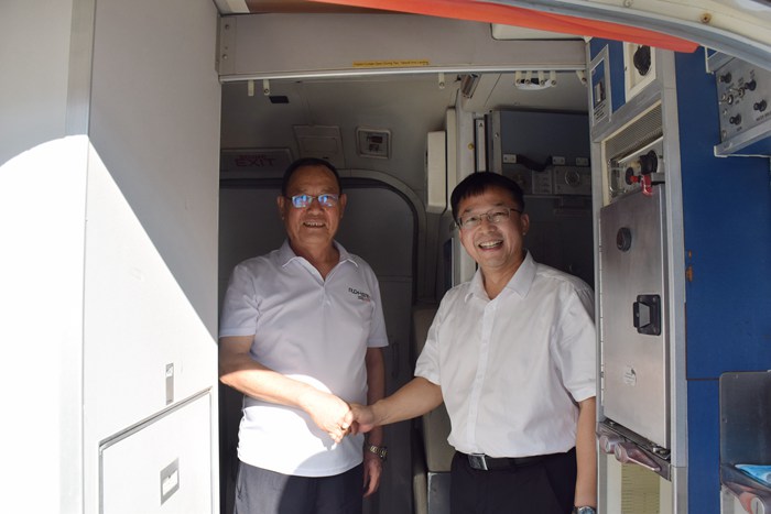 會後,賴國秋一行還(hái)登上飛機機艙,進行實地觀摩。