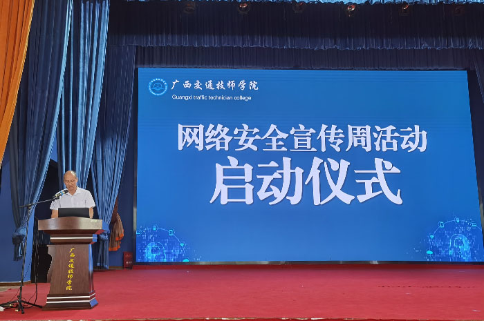 9月5日,在學院信息中心組(zǔ)織下,2022年(nián)國(guó)家網(wǎng)絡(luò)安全宣傳周活(huó)動啟動儀式(shì)在學院禮堂順利舉行,學(xué)院副院(yuàn)長關菲明出(chū)席並發表講(jiǎng)話。廣(guǎng)西工信(xìn)廳信息安全測評中心產學研基地副主任趙洪剛為全院師(shī)生進行網(wǎng)絡安全專題講座。