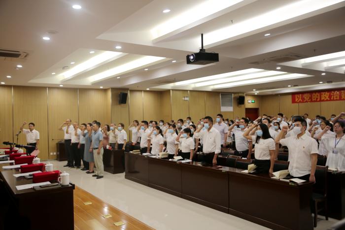 新黨(dǎng)員進行入黨宣誓、全體老黨員重溫入黨誓詞(cí)