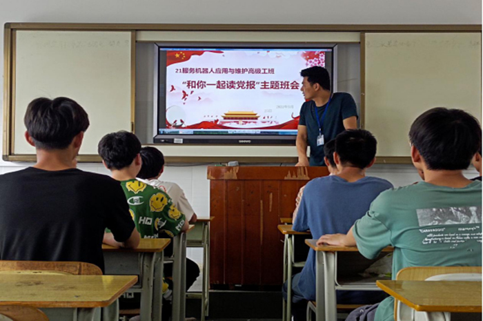 2021級(jí)服務機器(qì)人應用(yòng)與維護高級工班“和你一起讀黨報”主題班會