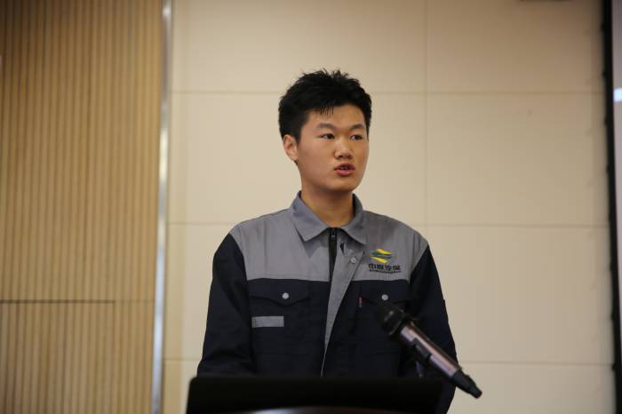 學生代表19競賽(sài)班(bān)佀峰(fēng)宇同學向大家分享(xiǎng)本次參賽的過程及收獲(huò),並承諾在接下來(lái)的備賽中,製訂周密(mì)的訓練計劃,努力提升技術技能,以飽滿的熱情、積極的心態代表廣西隊迎戰全國職業院校技能大賽汽車機電維修賽項。