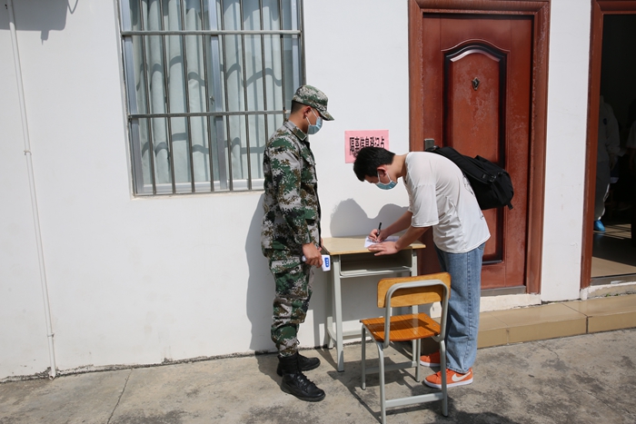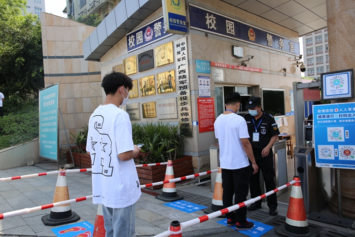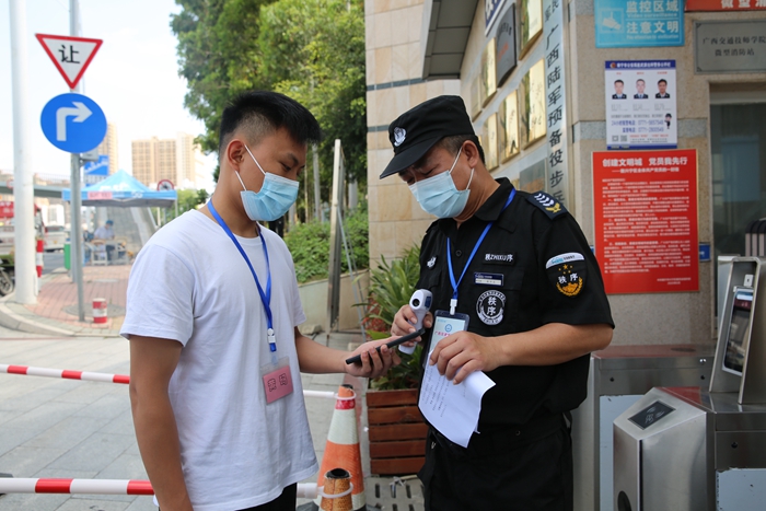 模(mó)擬學院安保部門人員檢查入校人員健康碼