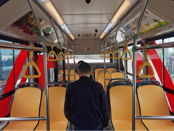 學(xué)院項(xiàng)目負責人對樣車低地板一級踏步入口進行介紹