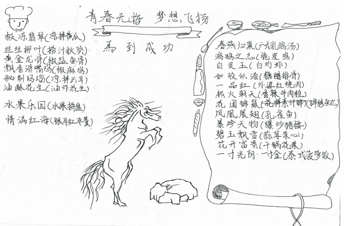 學生自製“青春(chūn)無悔(huǐ),夢想飛揚”主(zhǔ)題菜單