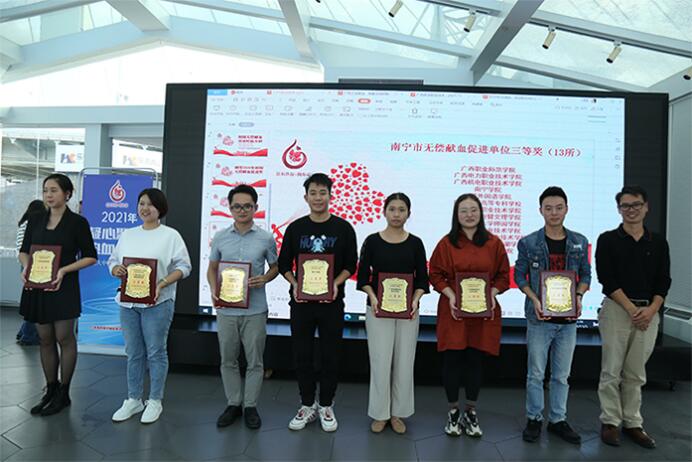 11月5日,南寧市中心(xīn)血站開展“凝心聚力 熱血(xuè)領航”駐邕大(dà)中專院校聯誼活動。廣西首府南寧獻血(xuè)委員會辦公室對2020年促進無償獻血事業持續健康發展的中高職院校給予表彰,我院榮獲2020年駐邕大中專院校無償(cháng)獻(xiàn)血促進(jìn)單位三等(děng)獎。