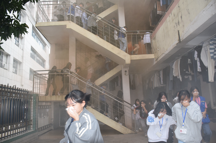 “同學們快捂住(zhù)口鼻,彎腰有序下樓。”下午15時,隨著尖銳的(de)警報聲響(xiǎng)起,模(mó)擬發生火災的疏散逃生環節開始。學院(yuàn)工作人(rén)員在指定位置點(diǎn)燃煙霧並鳴放警笛,參加演練的師生們(men)按照演練(liàn)方案預先設定的疏散路線和規定要求,在安全疏散員的引(yǐn)導下,師生(shēng)們用濕毛巾捂住口鼻,以低姿快速、有序地從各(gè)個安全出口進行疏(shū)散撤離,迅(xùn)速到(dào)指定地點(diǎn)集中。演練最後(hòu),現場消防指導員對演習過(guò)程(chéng)進行點評,充分肯定了演習(xí)成果,並對演習(xí)中暴露出(chū)的問題進行了總結