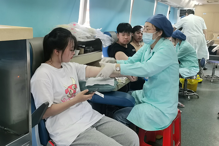 我院師生在(zài)南(nán)寧市中心血站工作(zuò)人員的指引下,依次登記填表、化驗血型、采集血樣,整個過程(chéng)井然有序。