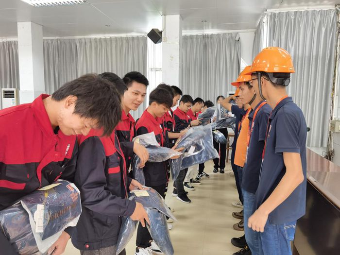 廣西歐日電梯服務集團有限公(gōng)司維(wéi)保培訓團隊(duì)向訂單(dān)班學生(shēng)頒發工作服