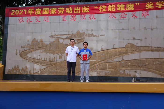 10月11日上午, 2021年度國家勞動出版“技能雛鷹”獎學金頒獎(jiǎng)儀式在我院邕武校(xiào)區隆重舉行。全體在校師生參加了頒獎儀式,儀式由學生工作科(kē)副科長孫廣福主持。據悉,勞動出版“技能雛鷹”獎學金由(yóu)人(rén)社部出資設立,用於獎勵品學兼優的高級技工(gōng)學校、技師學院高級工班或預備技師班的在校學生,今年全國共有100多名學生獲得此獎項,其中廣西有3名,我(wǒ)院2018級(jí)汽車維修預備技師班的賴德(dé)傑同學榮獲該獎(jiǎng)項。