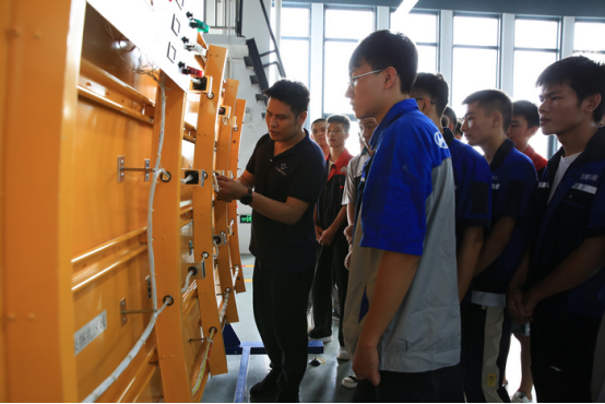 企業教員向學生講解(jiě)實訓拆解部件