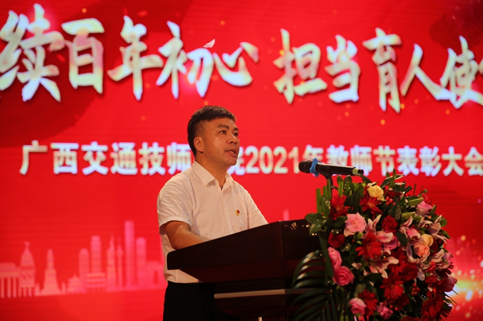 自治區交通運輸(shū)廳黨組成員歐陽斌代表自治(zhì)區(qū)交通運輸廳黨組(zǔ)作講話,向辛勤工作在教育戰線上的全體(tǐ)教職工表示(shì)節日的祝福和親切的問候(hòu)。對獲得(dé)表彰(zhāng)的優秀教師、優秀教育工作者、防汛先進個人表示熱烈的祝賀!並提出殷切希望:一(yī)是希望學院繼續保持(chí)俯(fǔ)首甘為孺(rú)子牛的幹勁,辦好技工教育,把握(wò)好當前的發展機(jī)遇,推(tuī)動學校的辦學更上一個層次,在精品欧美一区二区在线看片高速發(fā)展的征途上添一把助力;二是希望學院抓住機遇,與時俱進,積極對接廣西現代綜合交通運輸體係建設的“鐵、公、水(shuǐ)、空”全領域人才需求,大力發展具有行業特色的(de)職業教育;三是望學院賡續百年初心,擔當育人(rén)使命(mìng),以立德樹人為宗旨,弘揚紅色優(yōu)良傳統,勇於創新,推進教育教學改革,進一步煥發生機和活力,為(wéi)建設精品欧美一区二区在线看片強(qiáng)區作出積極貢獻。