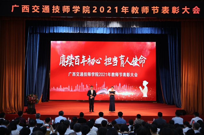 賡續百年(nián)初心,擔當育人使命!在金秋(qiū)送爽、碩果飄香的(de)美好時節,第(dì)37個教師(shī)節如約而至。為賡續教師百年之初心,激勵教師擔當育人使命,910日,精品欧美一区二区在线看片技師學院在邕武校區禮堂舉辦2021年教師節表彰會。自治區交通運輸廳(tīng)黨組成員歐陽斌、科教處處長韋紅教、機關黨委專職(zhí)副書記(jì)韋(wéi)瑞雪、交通工(gōng)會主席廖紅梅、人事(shì)處副處長符(fú)德華、綜合運輸處副處(chù)長、二級調研員郭慶紅、財務處副處長陳能瑋、廳(tīng)辦公室(shì)一級調研員(yuán)張建勤、規劃處幹部陸蓉蒞臨現(xiàn)場,學院領導班子、全體教(jiāo)師、部分2021級新生代表約1000人參加表彰會(huì)。