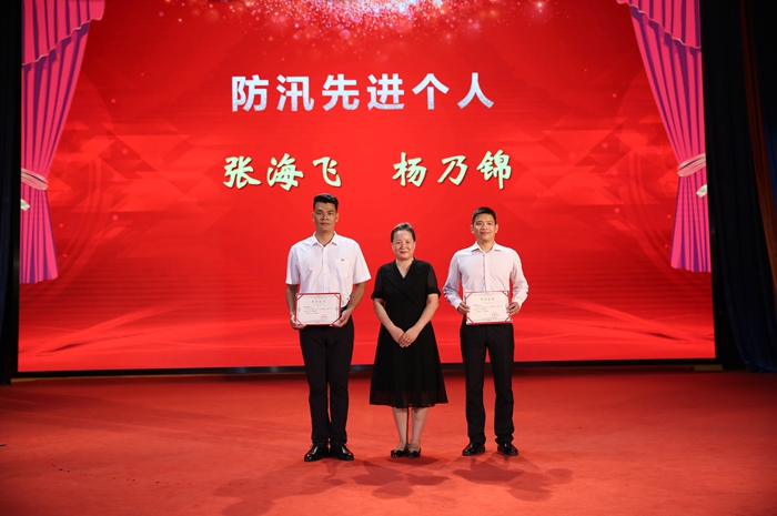 學院院長劉芳向“防汛先進(jìn)個人”稱號獲得者頒發榮譽證書